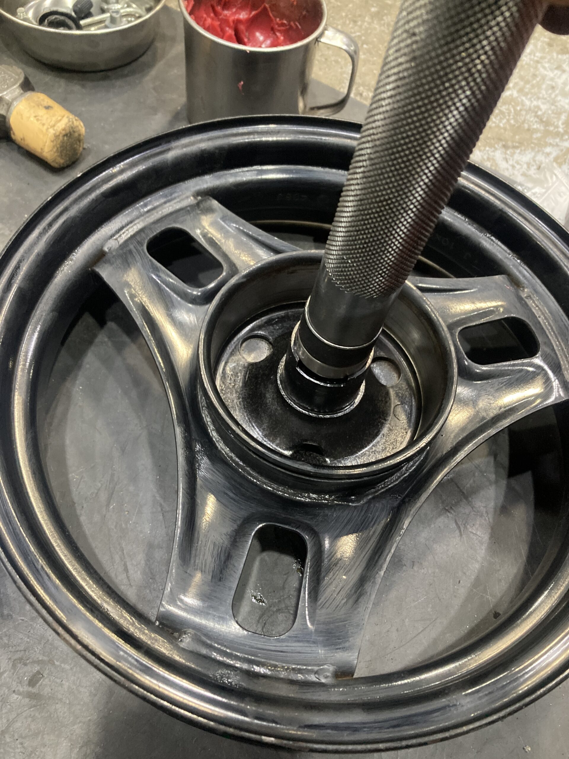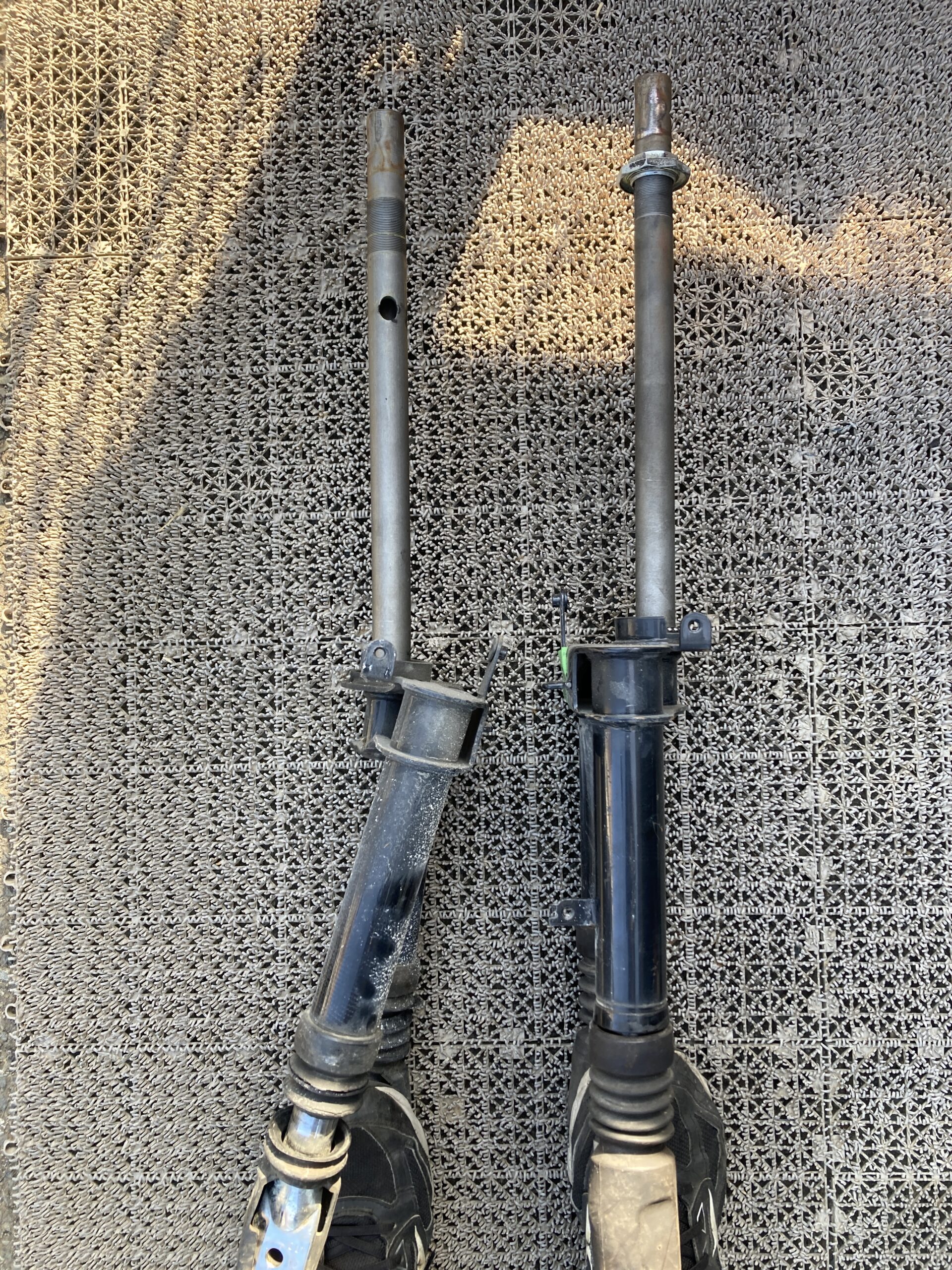 フロント事故のマグザムを引き取りました。画像のフロントタイヤの方向がおかしいのがお分かりでしょうか?